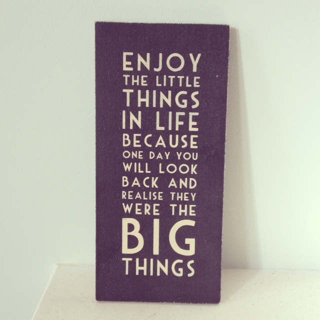 This sign above on a ledge by my stairs, reminds me to seek out the small pleasures on a daily basis. When I apply this to life right now, I know there’s no point me thinking about the cancer, the chemo and the possibility of never being able to have a child (just a selection of the big things). There are far more qualified people focusing on those aspects. No, my focus has to be on filling each day with a selection of small victories and fun memories, so that each day, I get that bit stronger and that bit happier. Then, when the big things come along, I can smile even when the lights are out.